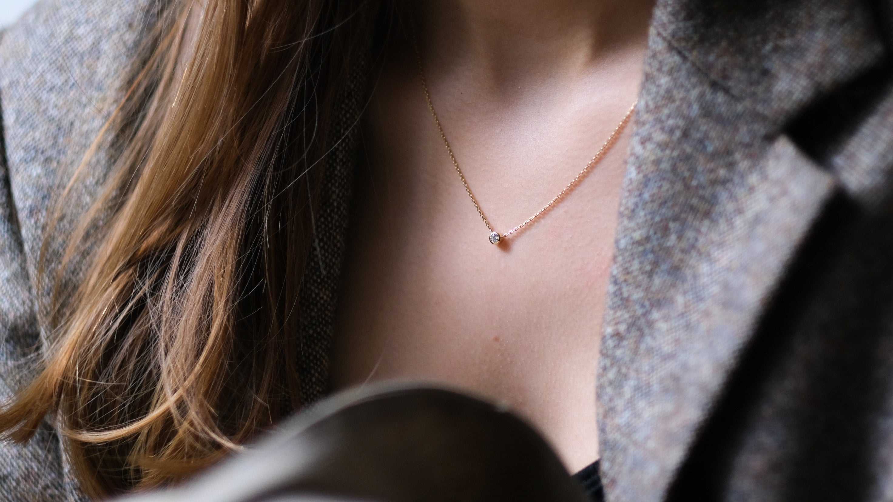 18K 0.1ct Bezel Lab Grown Diamond Necklace (YG)