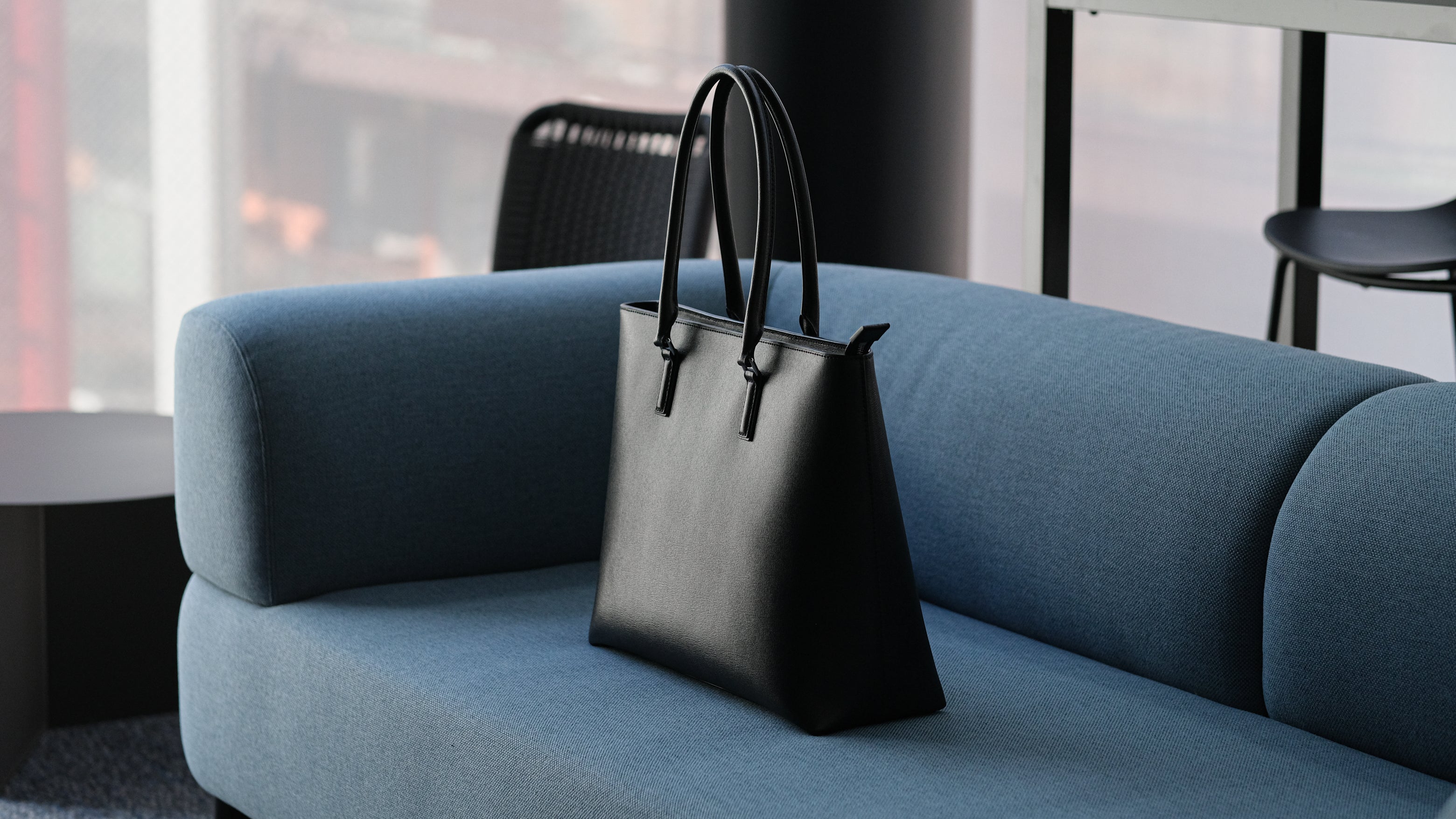 Italian Saffiano Leather Briefcase- Navy (Front-zip)