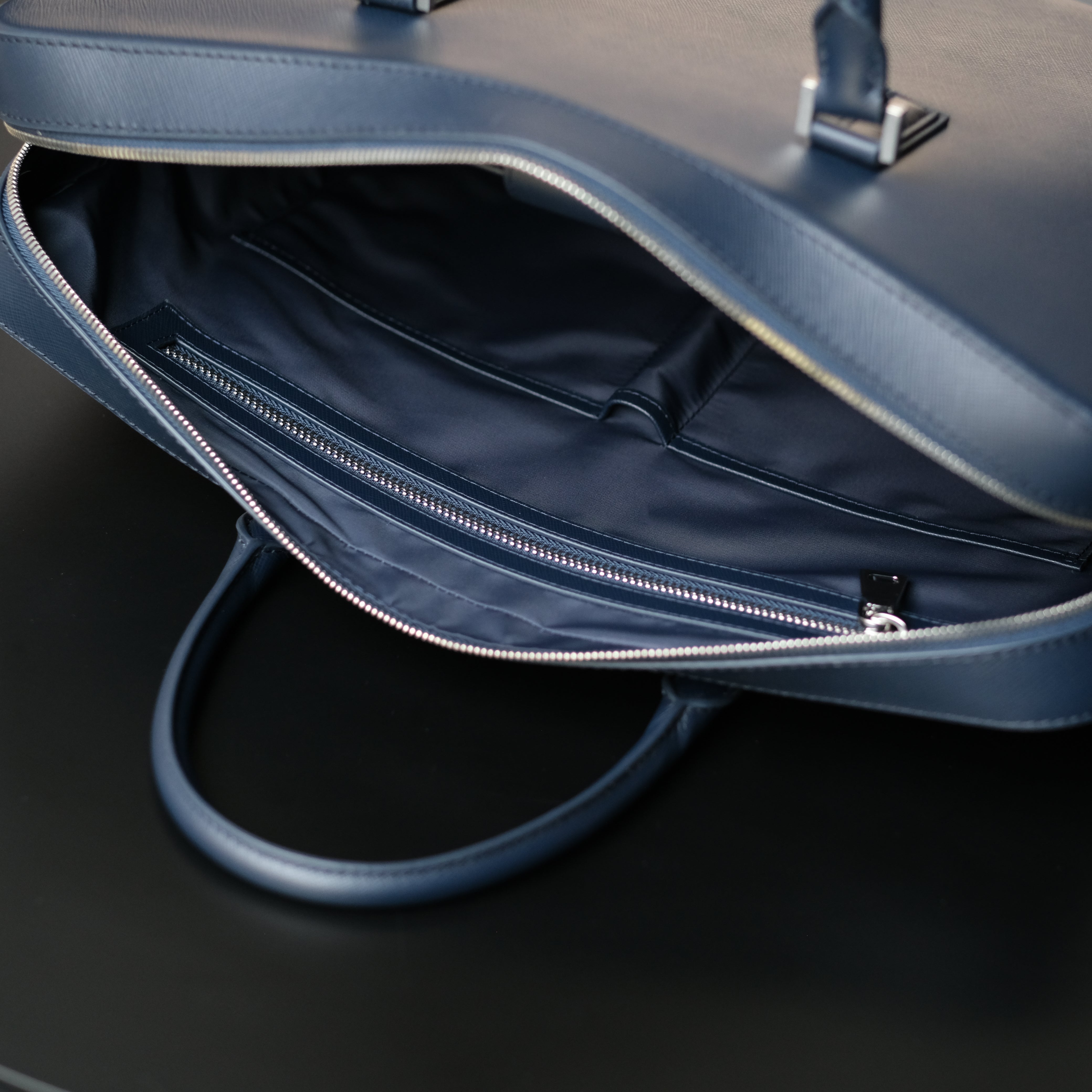Italian Saffiano Leather Briefcase- Navy (Front-zip)