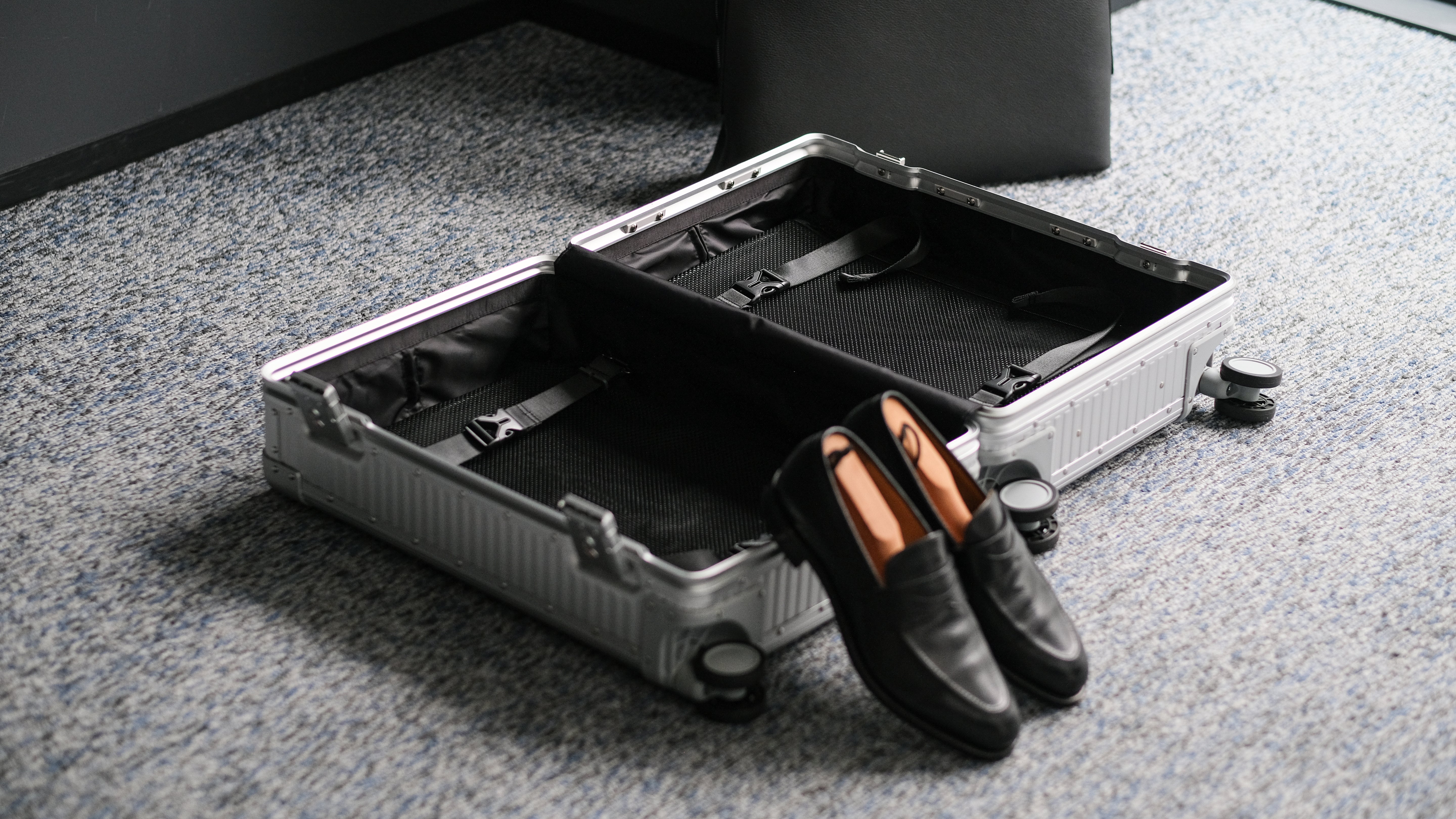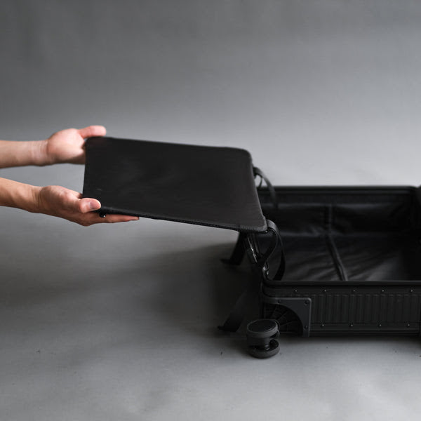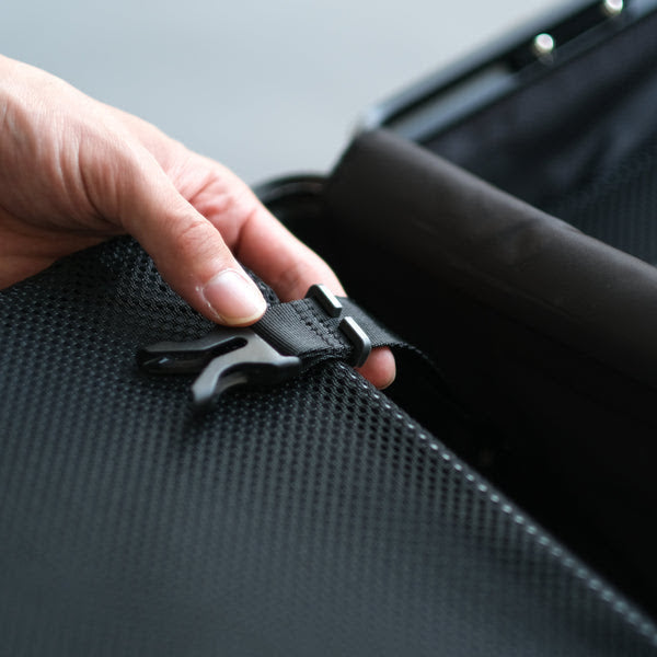 スーツケースを開いて左右外側にバインダーを固定することで、外開きとしてご利用いただけます。荷物の出し入れの際に視認性が抜群です。