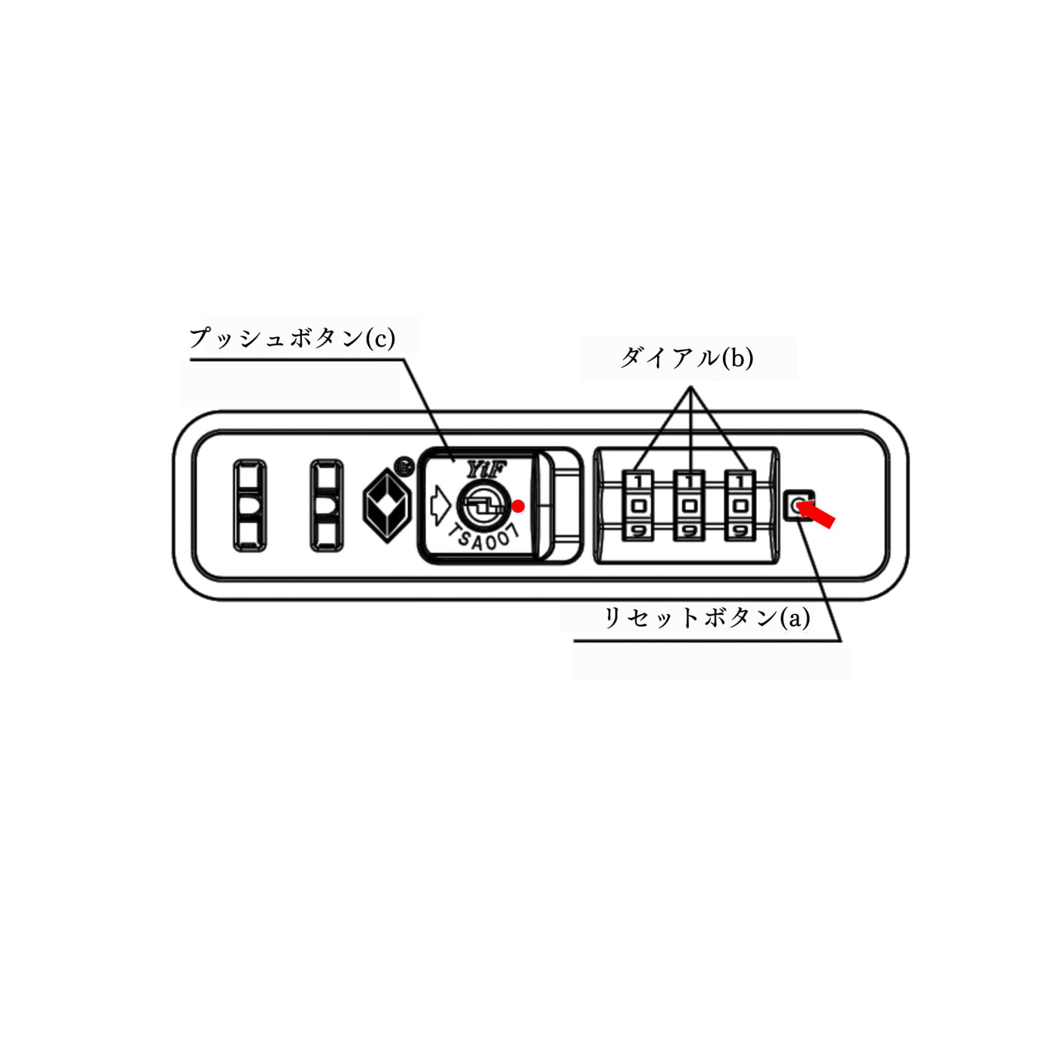 - プッシュボタン (c)を矢印の方向に押すとリセットボタン(a) が「カチッ」という音とともに元に戻ります。設定は以上です。