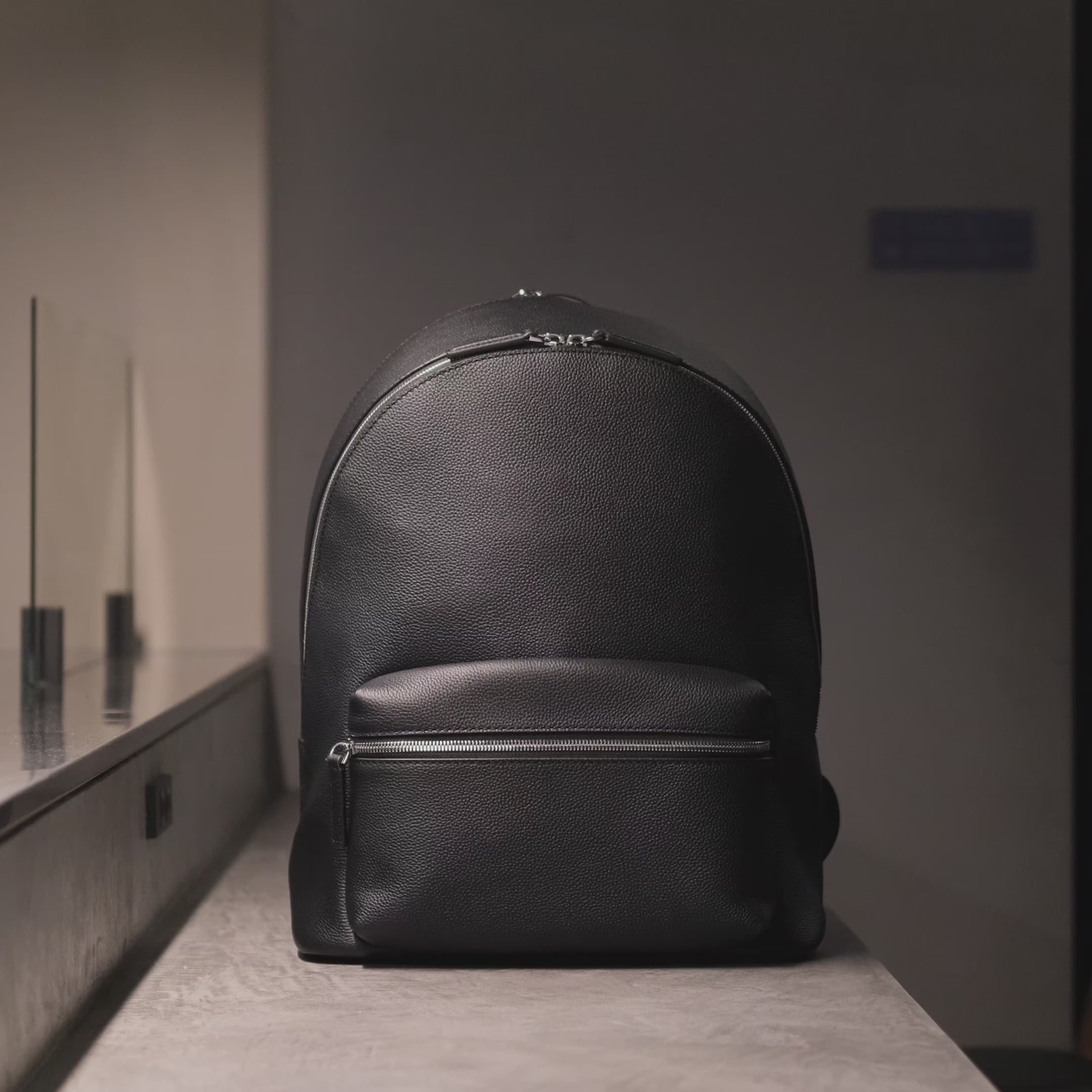 フルグレインレザーを使用した、シンプルで上品なデザインのバックパック。デイリーユースをイメージしたフォルムと仕様。