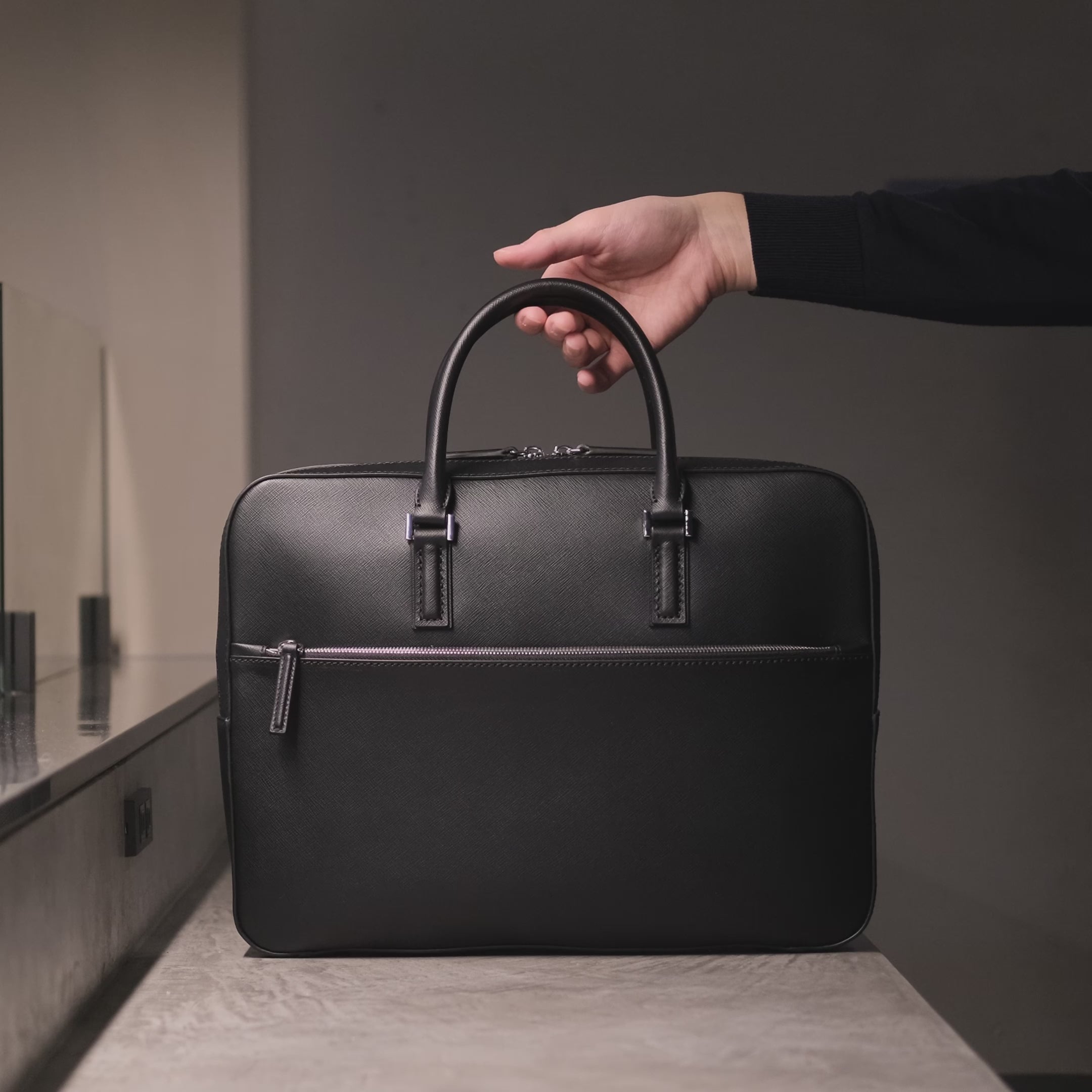 シンプルな装いながら使い勝手も良さを考慮して、ブリーフケースにフロントのジッパー(片面)をプラス。耐久性と上品な艶が特徴の独自ジッパーを使用ジッパーを使用しており、どの方向から見ても美しいと感じるように細部までこだわりを持って作っています。上品な艶がラグジュアリーを感じさせ、ワンランク上の装いに。