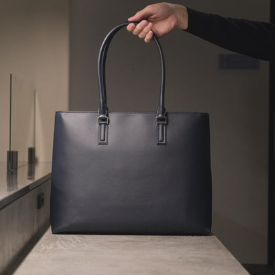 Italian Saffiano Leather Tote (Navy)