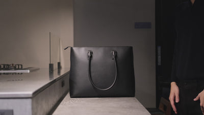 人目を引く艶が特徴のイタリアンサフィアーノレザーを使用した、軽量で耐久性の高い万能トートバッグ。